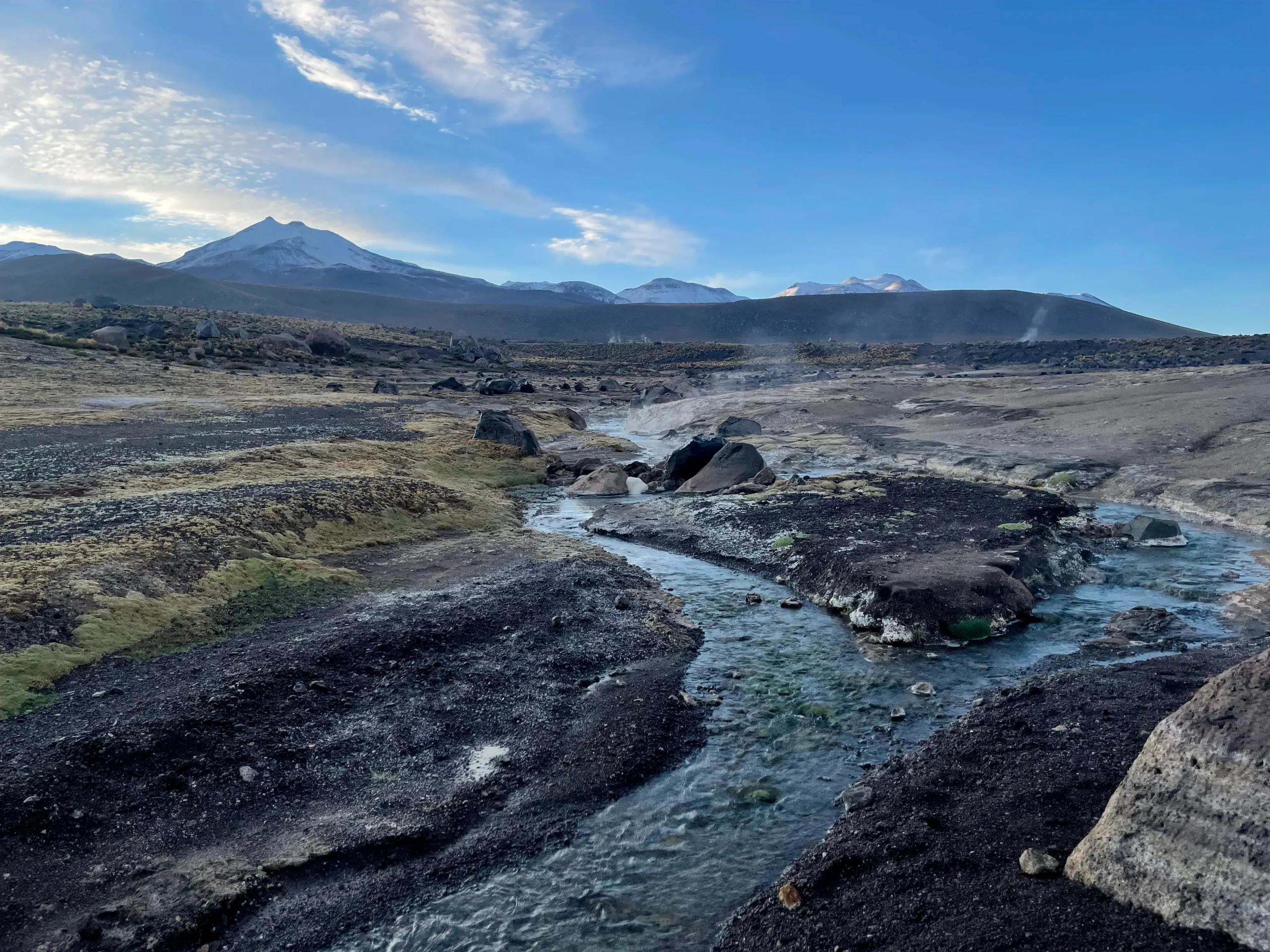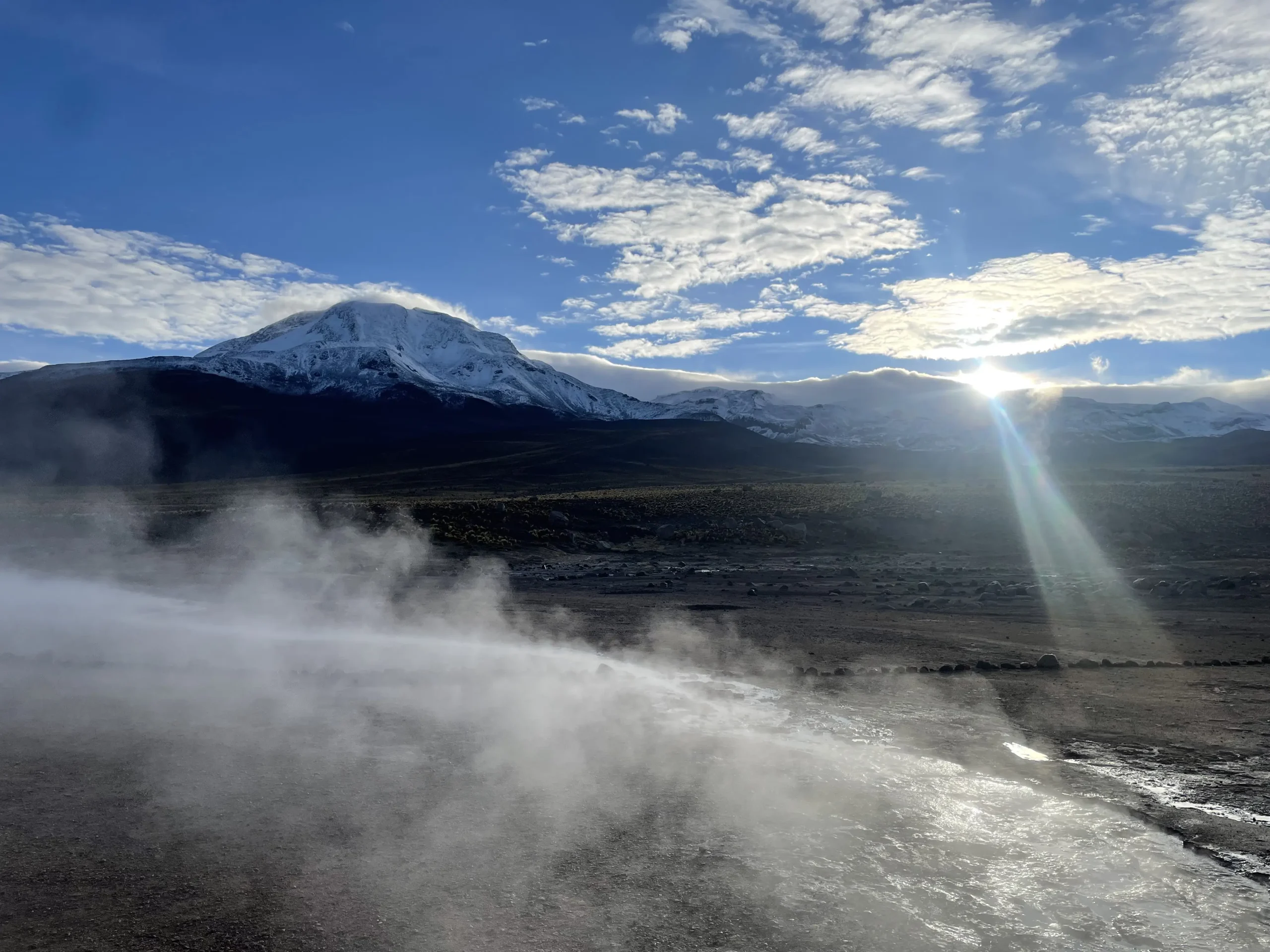 Allí tomaremos desayuno y realizaremos un recorrido por el campo geotérmico, el tercero más grande del mundo, después de Yellowstone National Park en EE.UU. y las Dolinas Geiserov en Rusia. Haremos una caminata de una hora y media, para luego comenzar la ruta de retorno, haciendo paradas en sitios de mayor interés como el bofedal de Putana, con vista al volcán activo Putana; y el poblado de Machuca, donde vive una comunidad indígena que aún cría llamas, con su iglesia del siglo XVI y un bofedal que es sitio de nidificación de los flamencos.